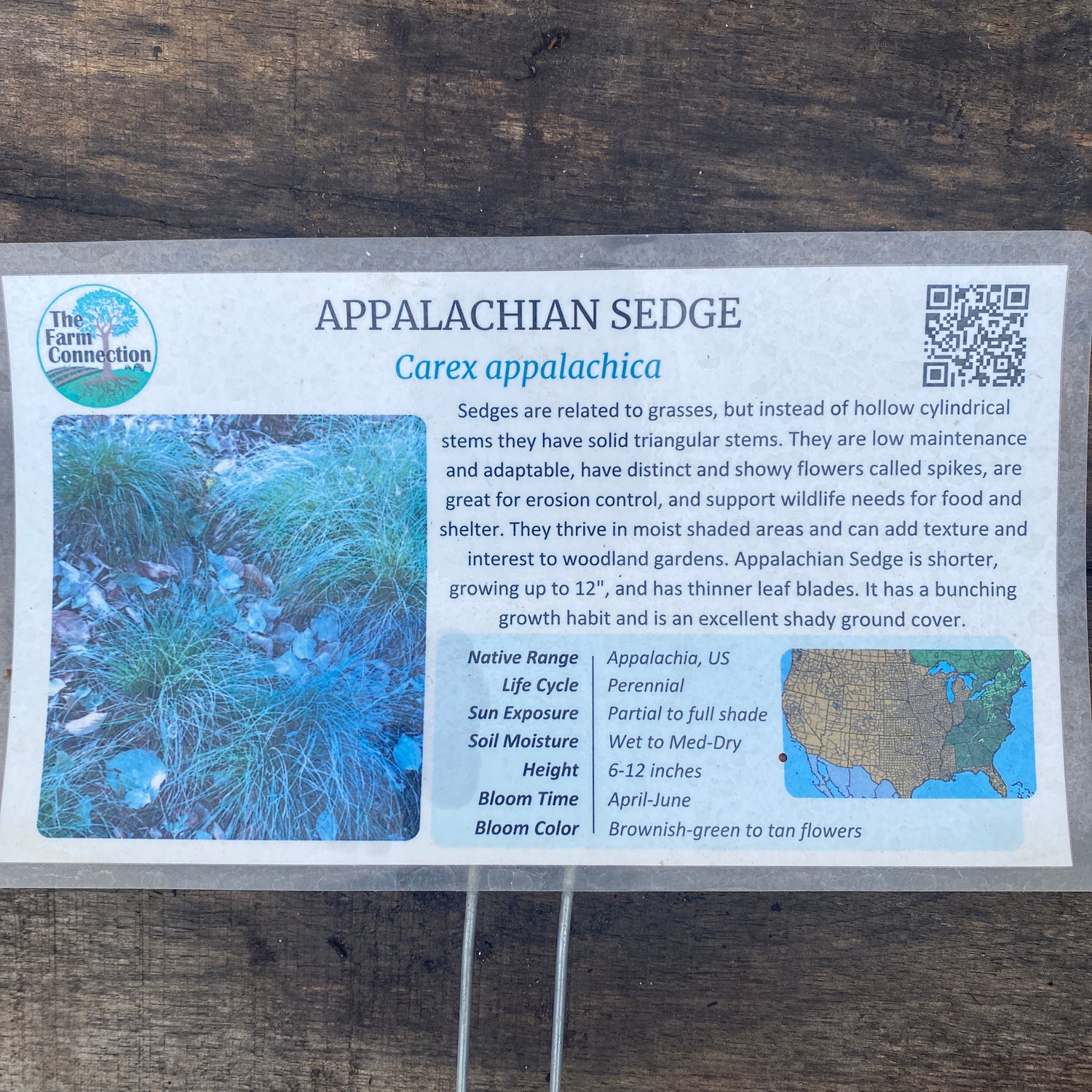 Appalachian Sedge is a graceful, fine-textured native grass-like plant that thrives in dry, shady areas, making it perfect for woodland gardens, rock gardens, and under trees. Its tufted, arching green blades form a soft, low-growing ground cover that helps control soil erosion and provides habitat for beneficial insects and small wildlife. Appalachian Sedge is ideal for naturalizing difficult-to-grow areas while offering valuable ecological benefits.