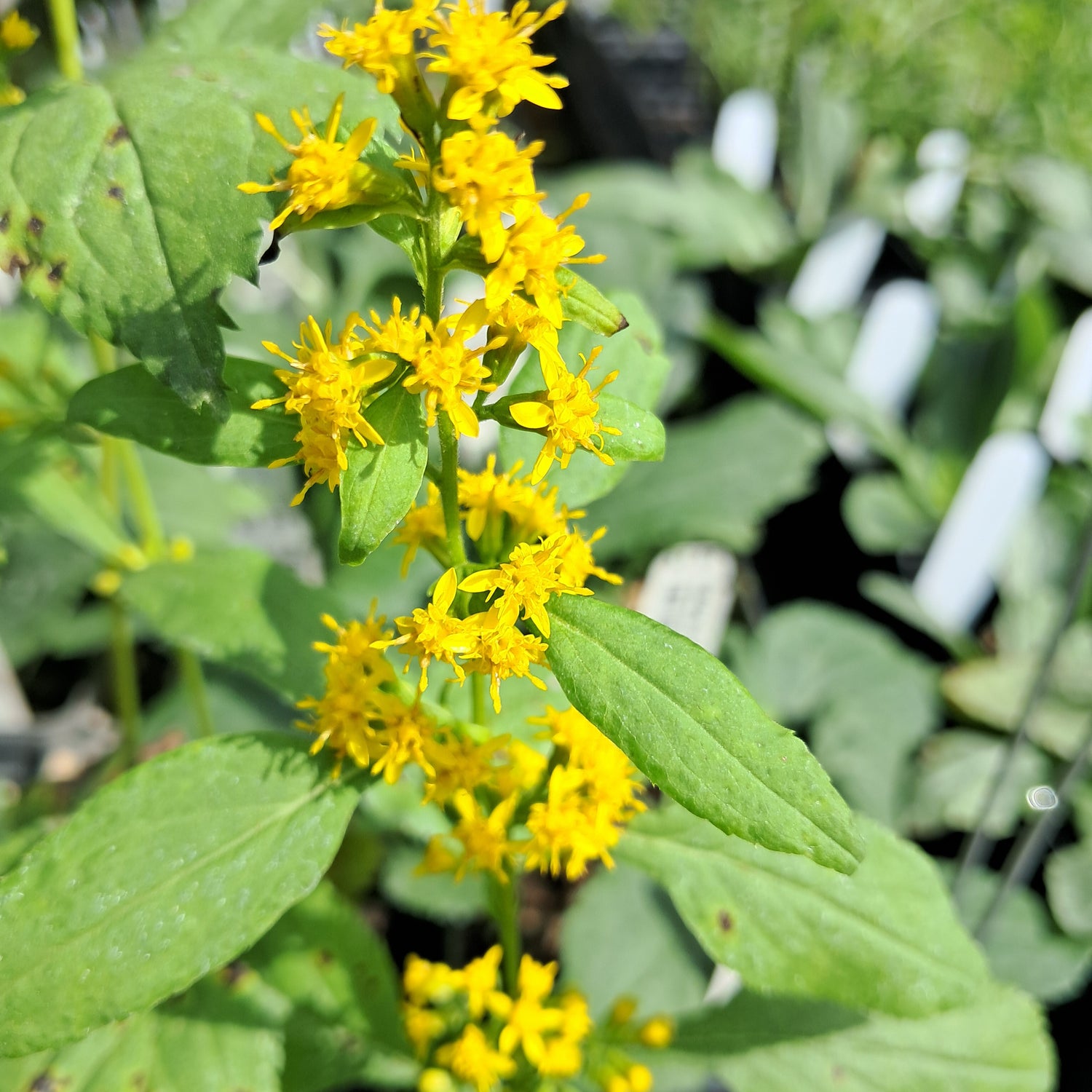 Zigzag Goldenrod is a shade-tolerant native goldenrod that brightens woodland edges and understory gardens with clusters of soft yellow blooms in late summer and fall. Named for its distinctive zigzagging stem pattern, Solidago flexicaulis is an essential nectar source for late-season pollinators, especially in shaded and semi-shaded habitats where few other flowers bloom. With its broad ecological benefits and adaptability to part shade, this goldenrod is a vital piece of any native, permaculture, or rewilding landscape.