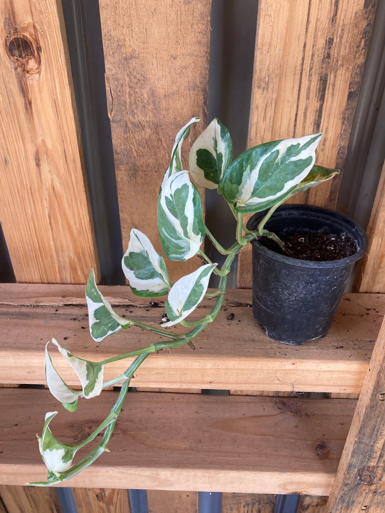 N'Joy Pothos is a stunning cultivar of the classic pothos, prized for its crisp, white-and-green variegated foliage. Its compact growth habit and smaller leaves give it a refined, ornamental look that sets it apart from other pothos varieties. Like its golden cousin, N'Joy is extremely easy to care for and thrives in a wide range of indoor environments. Though primarily grown as a houseplant, it can also be cultivated outdoors year-round in tropical climates.