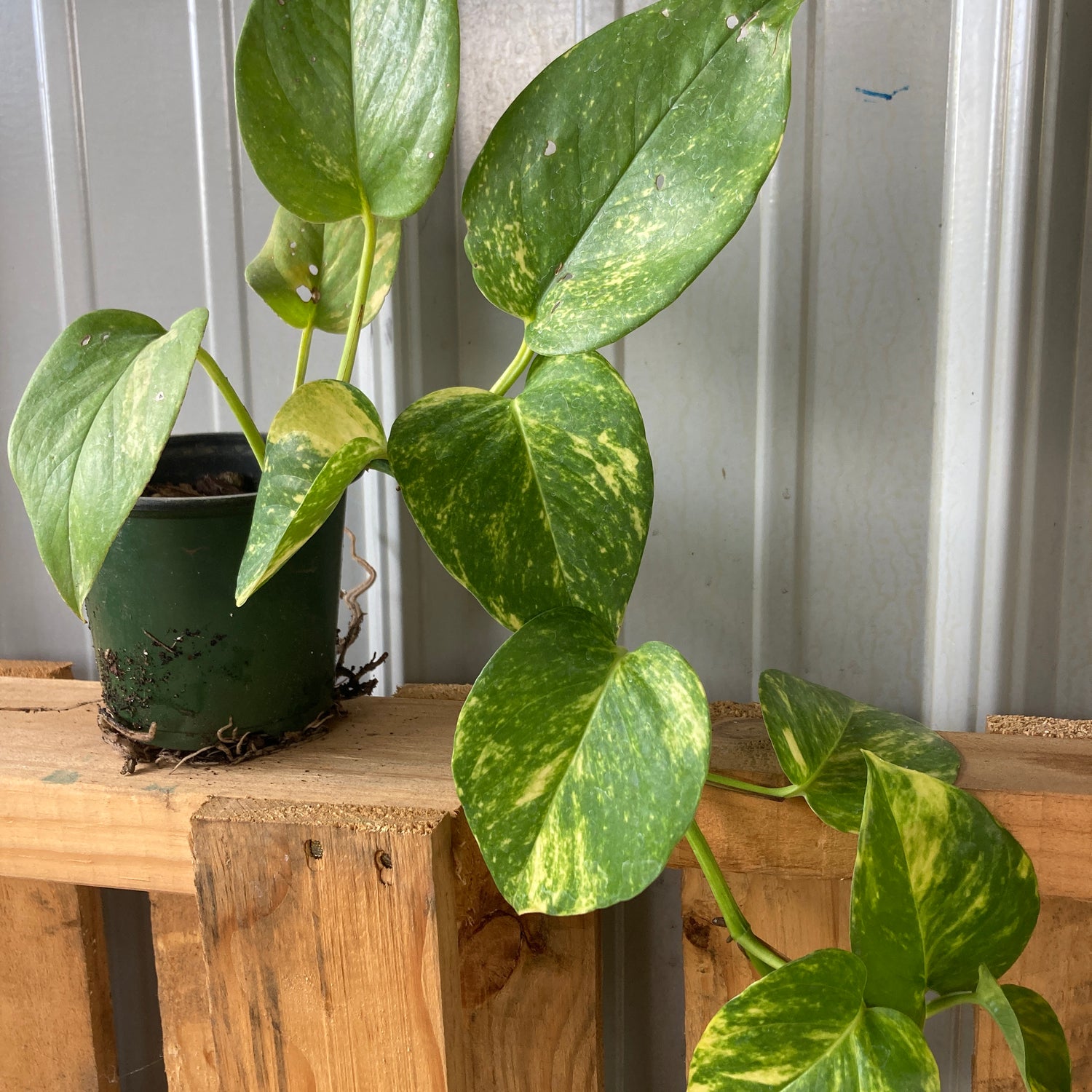 Golden Pothos is one of the top houseplants for removing indoor air toxins, including formaldehyde, benzene, and carbon monoxide, making it an excellent plant for improving air quality in homes and offices. Its trailing vines can be trained to climb walls, trellises, or cascading from hanging baskets. -