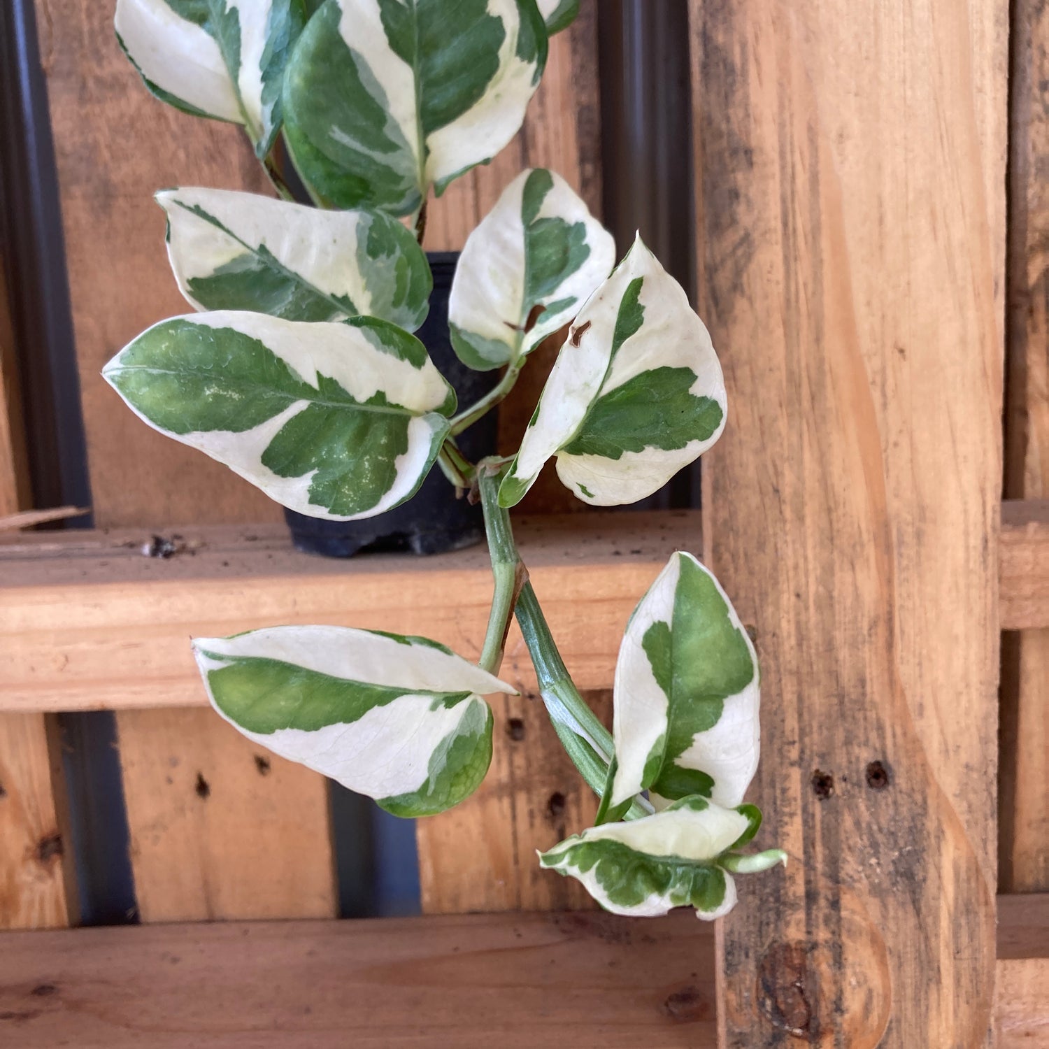 Unlike more vigorous pothos types, N’Joy tends to grow more slowly and with tighter internodes, making it easier to manage as a tabletop or shelf plant. It can still trail beautifully or climb a support, but with less aggressive spread—perfect for small spaces or design-focused displays. -